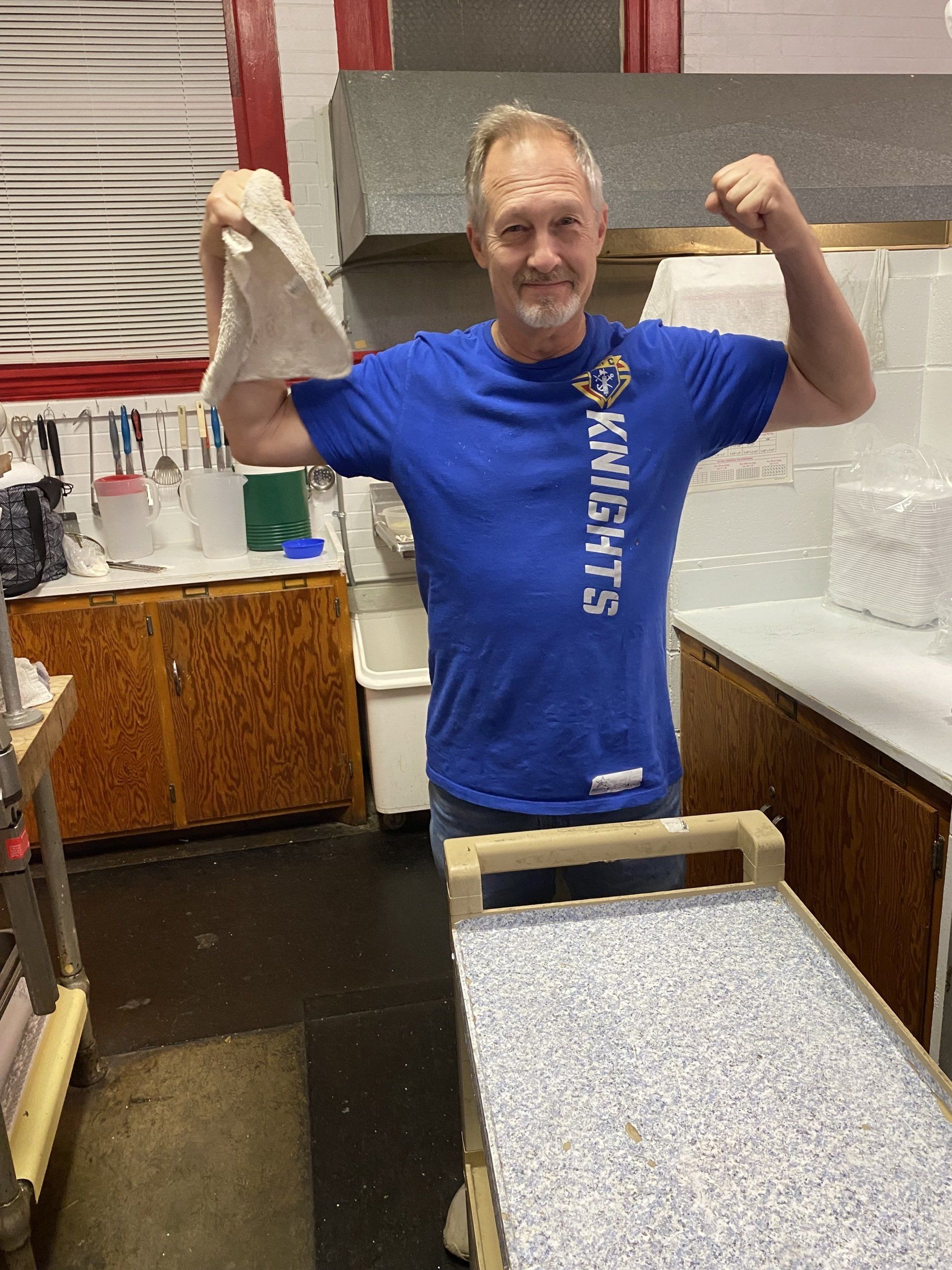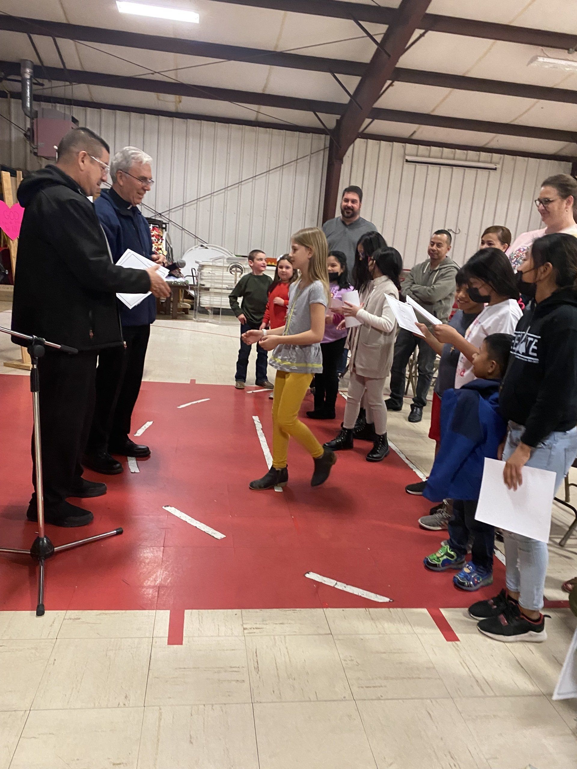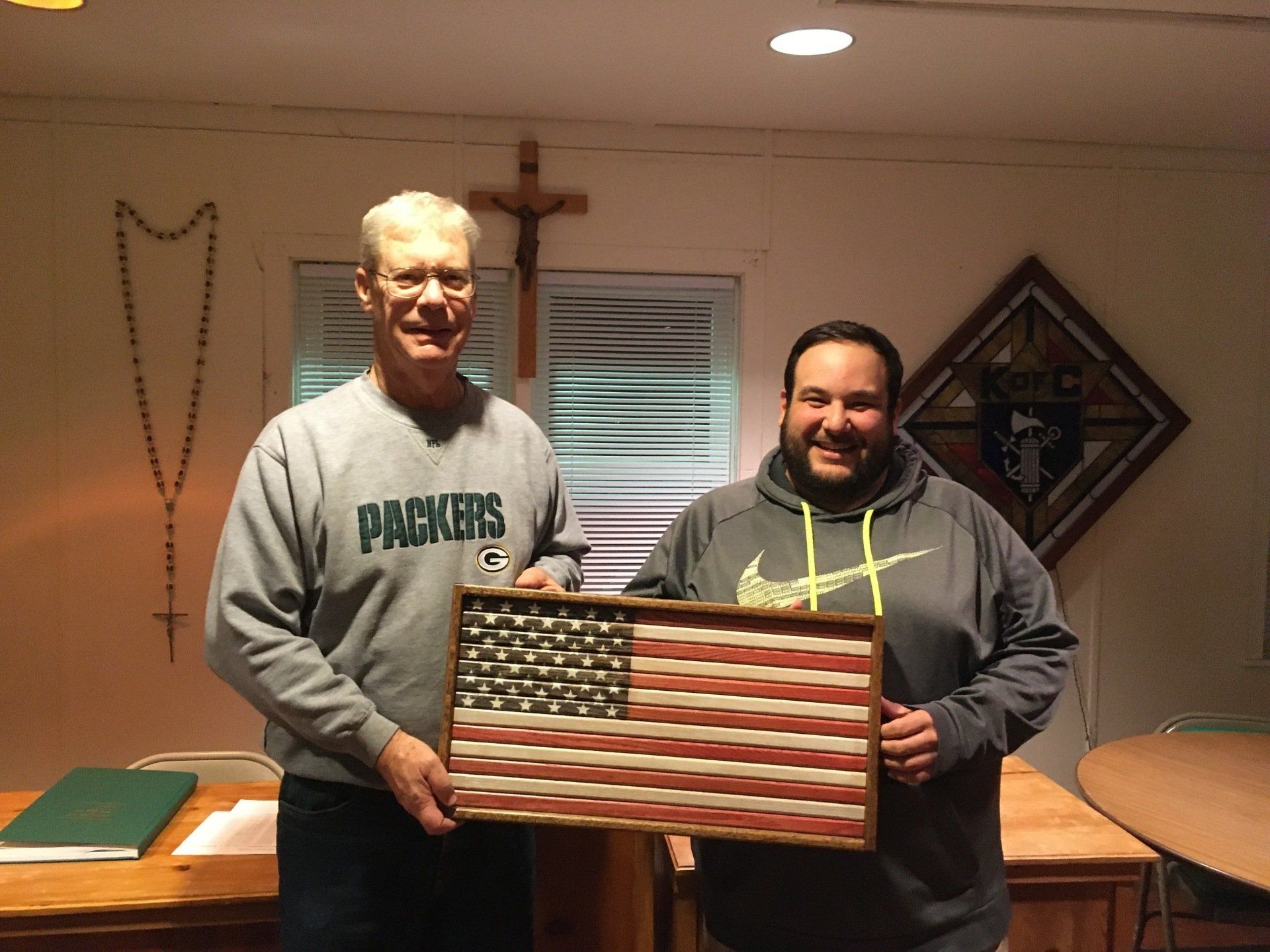 February 8, 2022 Deacon Jim is presented with a gift, from K of C 9190, for being the chaplain for them.
