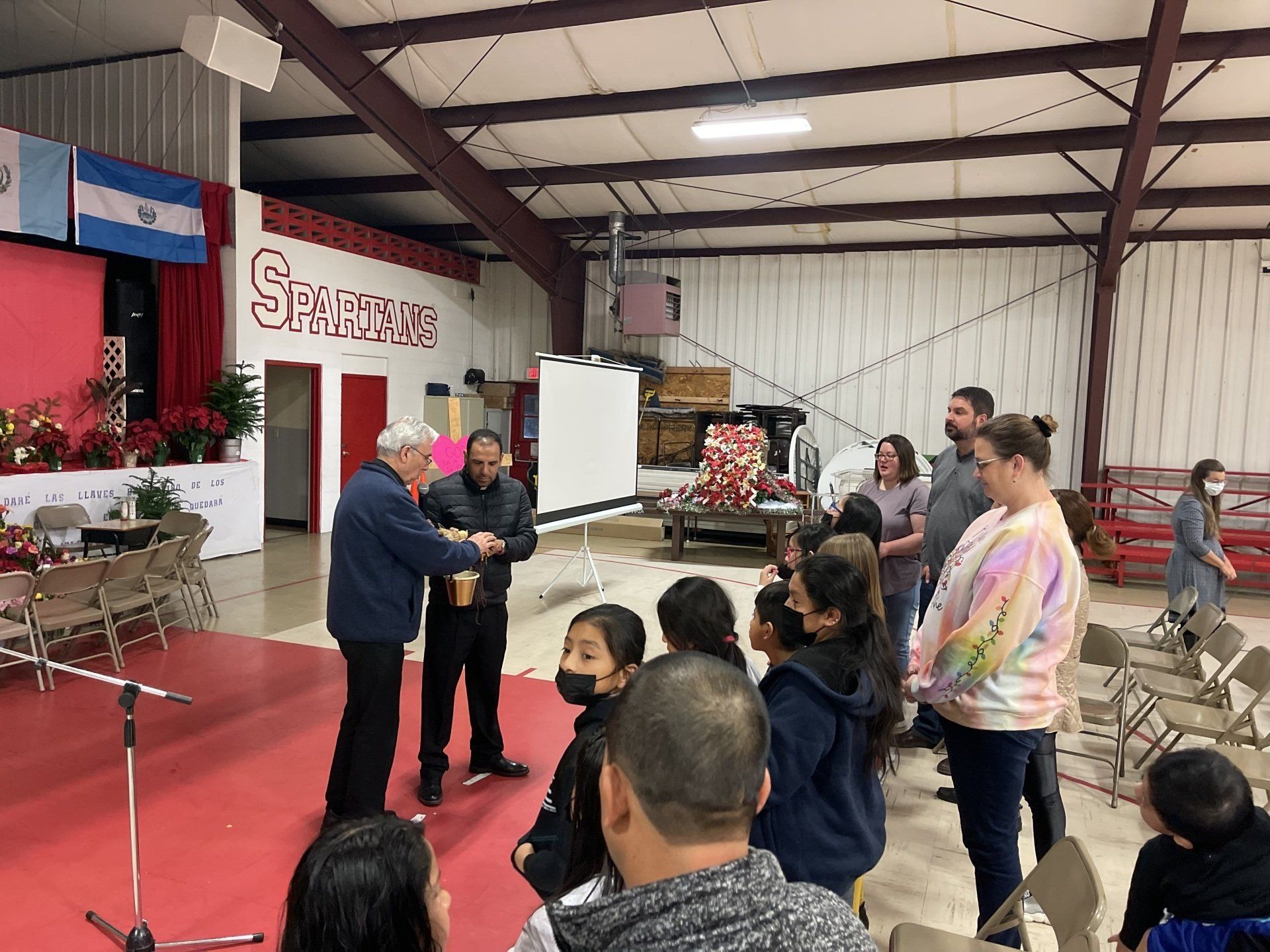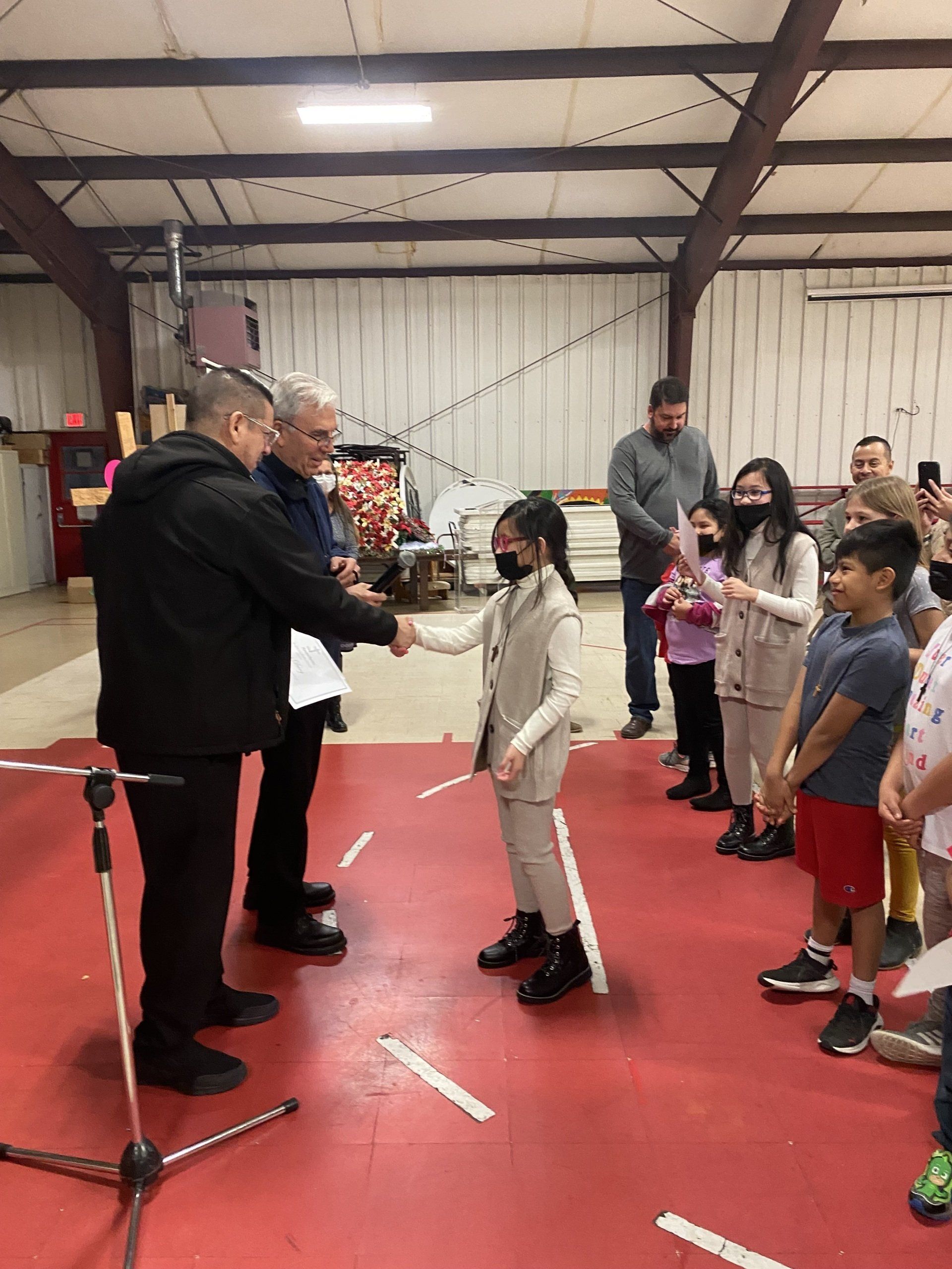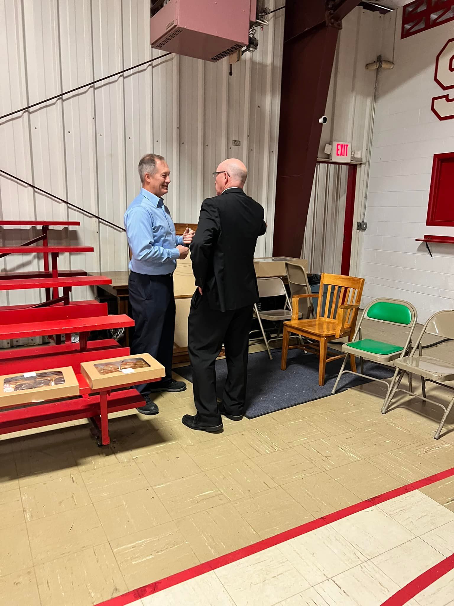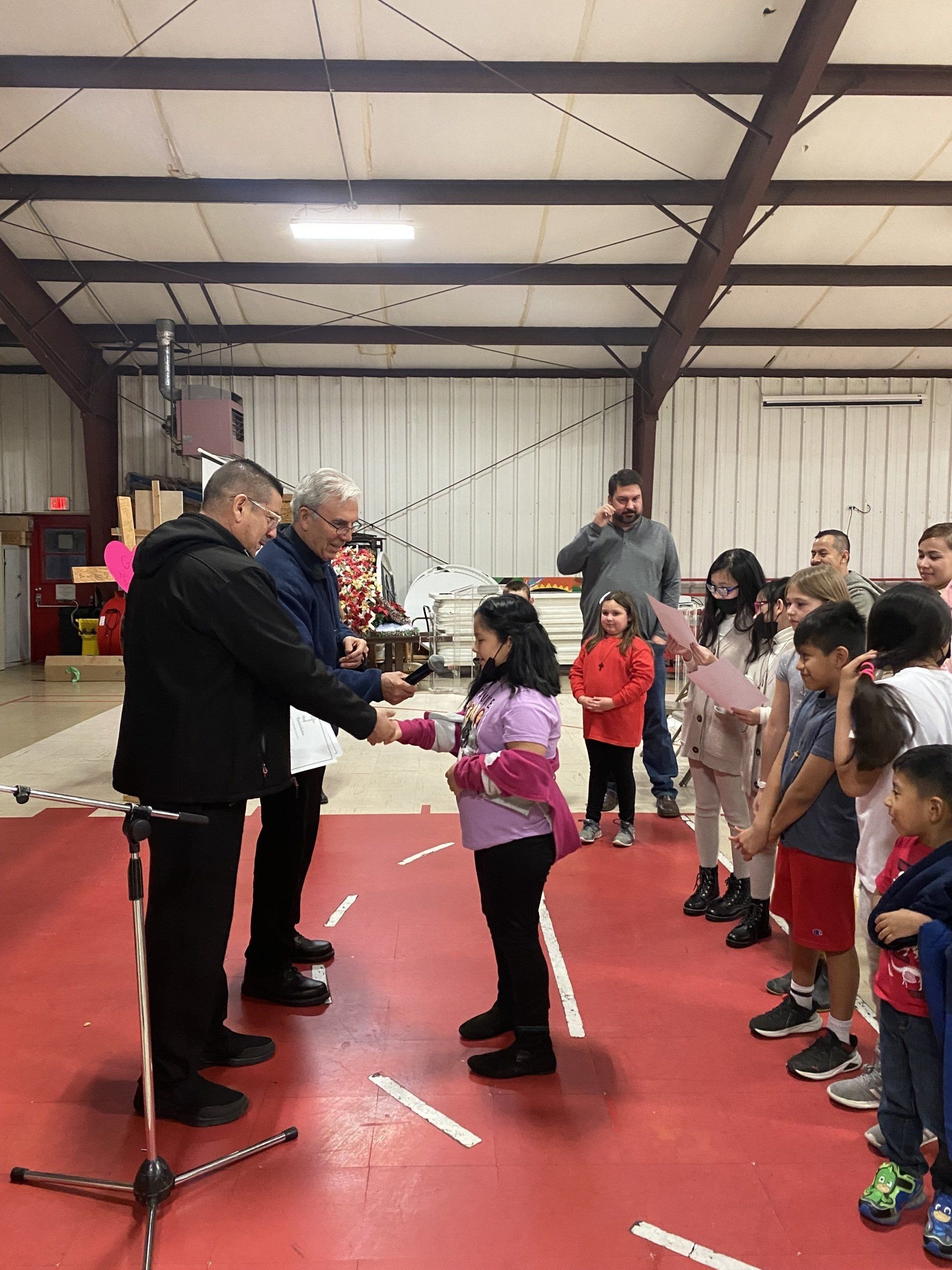February 8, 2022 Deacon Jim is presented with a gift, from K of C 9190, for being the chaplain for them.